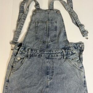 super comfortable overalls that come up above the ankle and have a distressed style at the bottom.