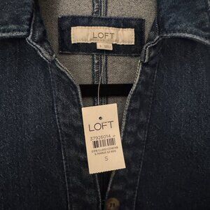 Utility-chic pockets stamp this perfectly structured cotton denim shift dress with modern attitude. Point collar. Long sleeves. Button placket. Patch pockets.
