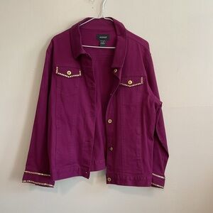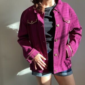 Denim Purple Button Down Jacket with Metallic Gold Punk Studs - Fits Medium