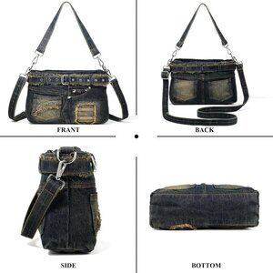 Denim Purse with Rhinestones Crossbody Shoulder Bag Bling Small Jean Purses for