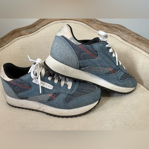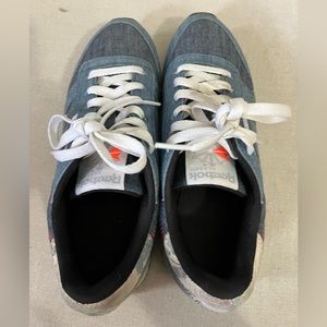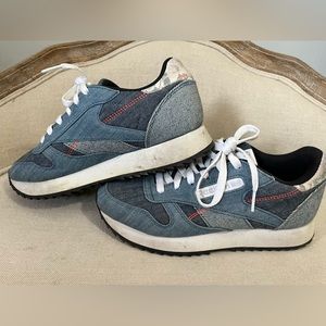 Denim and suede Reebok Classics, in excellent condition! Only sign of wear is the suede on the back (see picture). Women’s size 7.5