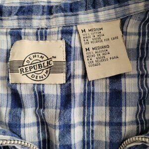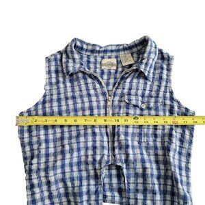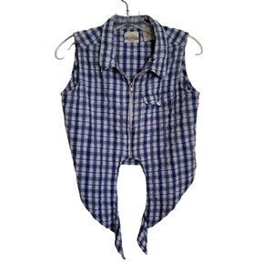 Denim Republic Denim Blue and White Plaid Sleeveless Cropped Zip Closure