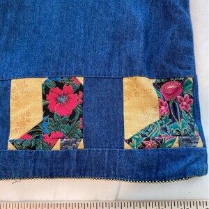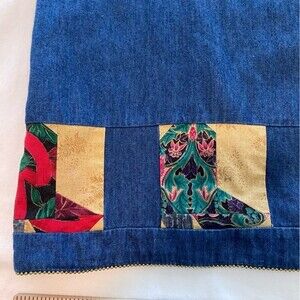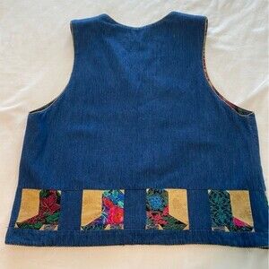 Denim Reversible Vest Gold Studs Southwestern Batik Boot Satin Blue Red SZ L
