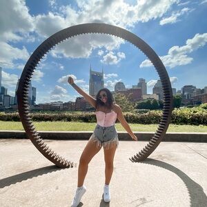 Denim rhinestone shorts. Perfect for a trip to Nashville or bachelorette! Waist is 29
