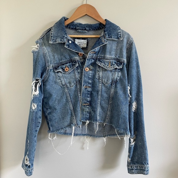 Denim Ripped Cropped Jacket