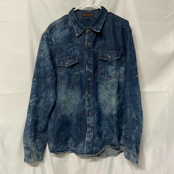 Denim & Rivets Shirt Jacket XL Distressed Button Up