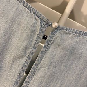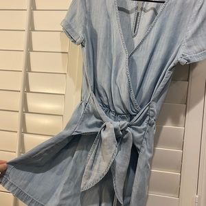 Super cute light denim romper with tie front. worn only a couple of times! It’s in great condition and goes great for any event!
