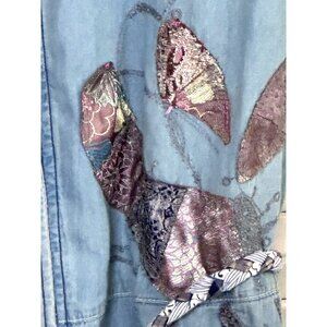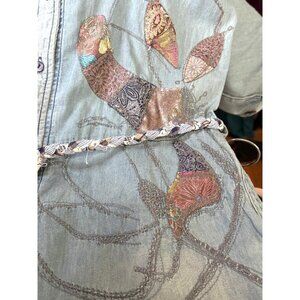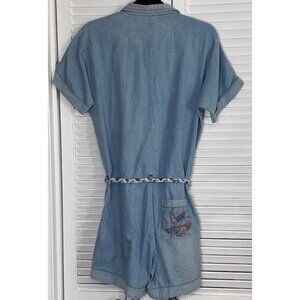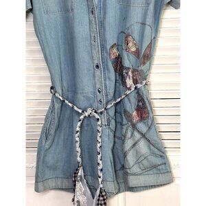 Denim Romper Butterfly Embroider 28 M Light Wash Chambray Shorts Jumpsuit Rodeo
