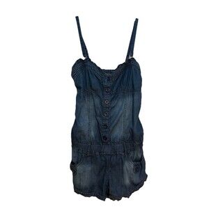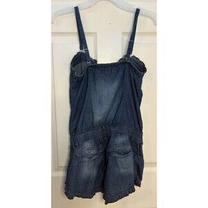 Denim Romper Spaghetti Straps Pleated Ruffles Buttons Pockets Size Small Noble