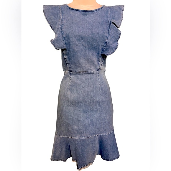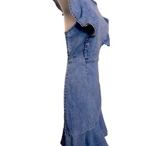 Denim dress with ruffle sleeves.