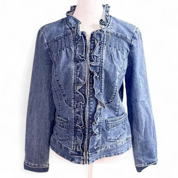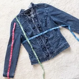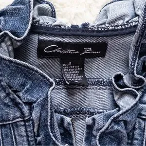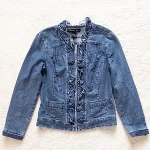 Christiana Zinn blue denim zip up jacket with ruffles size small, see pictures for measurements. In excellent condition. Always shipped same or next day. #denimjacket #jeanjacket #preppy #boho #retro