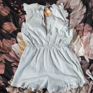 **Sleeveless Denim Romper with belt NWT** Never Worn. Romper is not Fashion Nova brand.