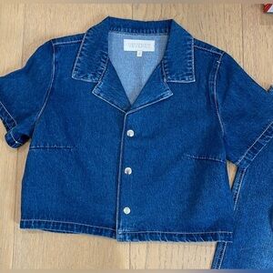 Elevate your wardrobe with this chic denim set. Featuring a classic blue hue, this ensemble is perfect for any casual outing. Enjoy the comfort and style of this versatile outfit.