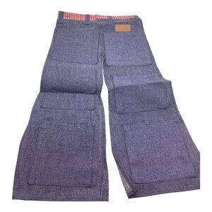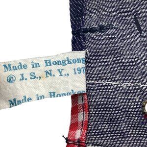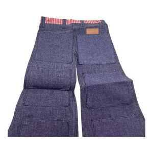 Denim Shoe Bag Unisex Red Gingham Trim & Multiple Pockets For 3 Pair of Shoes
