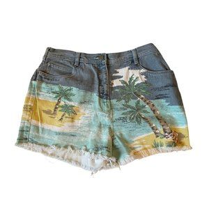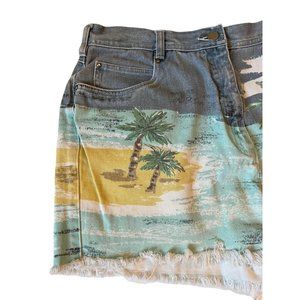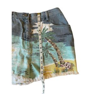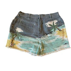 Denim Shorts Painted Beach Palm Tree Shorts Size 16 (measurements in photos)