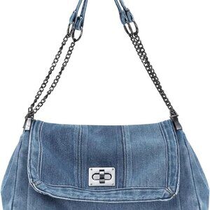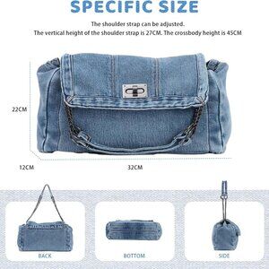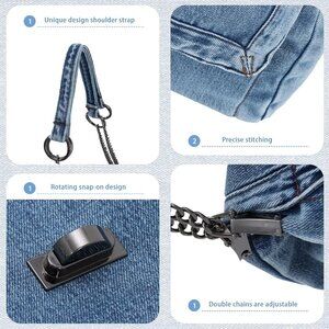 Versatile Design]: The Denim Shoulder Bag features an adjustable chain strap, allowing you to switch between a shoulder bag and a crossbody style, ensuring comfort and flexibility for any occasion