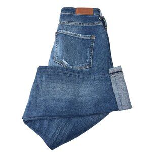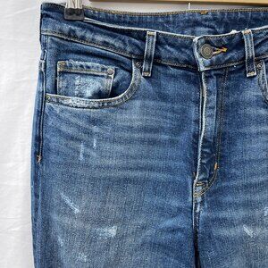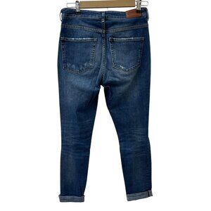 & Denim Skinny High Waist Jeans Ripped Distressed Knee Cuff Hem Blue Womens 28