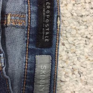 (Size 0 Reg/normal) Aeropostale skinny jeans, well-loved but still in good condition. The right front pocket folds over a little bit, but other than that there are no noticeable flaws that I can see. Make sure to look at provides pictures before purchasing!