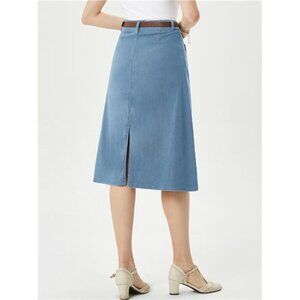 Removable Matched Belt: The denim skirt comes with a matched belt, which is removable, for added versatility in styling