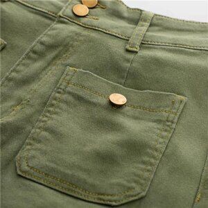 Patch Pockets at Front: The front of the jean skirt is adorned with two patch pockets, providing stylish and functional storage for small items