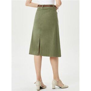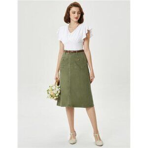 Denim Skirt with Belt Knee Length Jean Skirts Green
