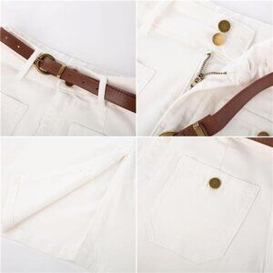 Denim Skirt with Belt Knee Length Jean Skirts White