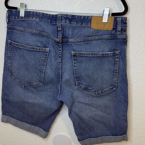 &Denim- Slim Fit Cuffed Button Fly Distressed Bermuda Shorts- Size 34