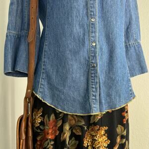 Denim Snap Front Collared Shirt Roll Tab Sleeve Size Small, Christopher & Banks Brand, Good Condition