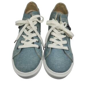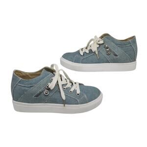 Denim Sneakers Womens 8 Light Wash Platform Zipper Hipster Lace Up Low Tops