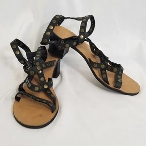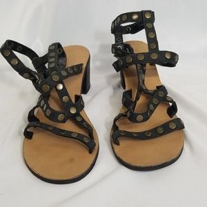 Denim & Supply Ralph Lauren Black Stud Strappy Gladiator Block Heel Sandals