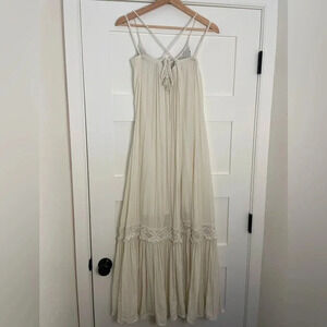 Denim & Supply Ralph Lauren Boho Maxi Dress Cream Embroidered Crochet Lined XS