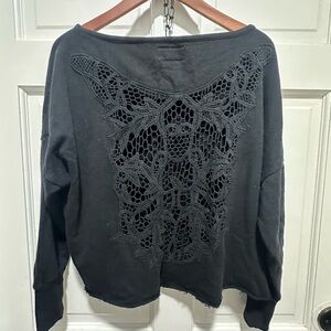Denim & Supply Ralph Lauren Crop Floral Steer Sweatshirt Crochet Back RARE Med