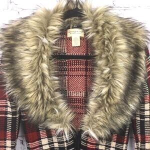 Denim & Supply Ralph Lauren Faux Fur Button Down Wool Blend Plaid Cardigan XS