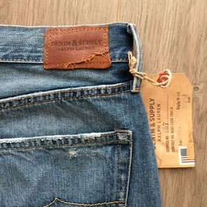 Denim and Supply"– de-bossed leather patch at the back right waist