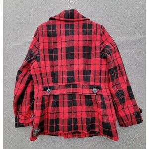 Denim Supply Ralph Lauren M Red Black Buffalo Plaid Double-breasted Pea Coat