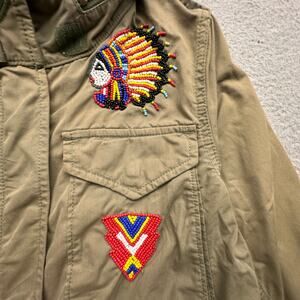 Denim & Supply Ralph Lauren Military Field Jacket Womens XS Hooded Beaded Embroidery Green Native American Southwestern