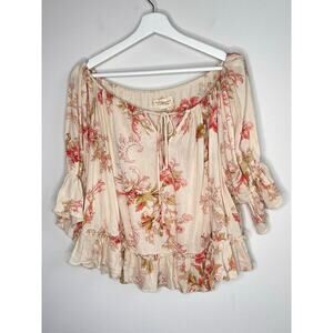 Denim & Supply Ralph Lauren Natural Floral Print Boho Off the Shoulder Top L