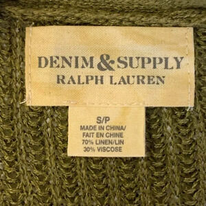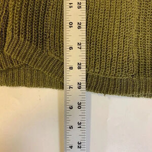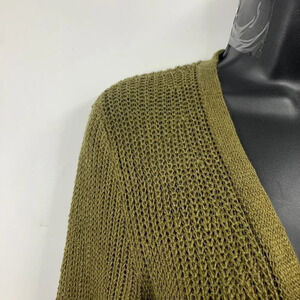Cozy olive cardigan with button front. Features two front pockets. Perfect for layering.