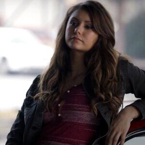 Denim & Supply Ralph Lauren Stretch-Lace Scoop Neck 3/4 Sleeve Henley in Deep Ruby as seen on Katherine Pierce (Nina Dobrev) in The Vampire Diaries season 5 episode 14. Same style, brand and color. Hard to find in the screen accurate color. Katherine wore a white camisole underneath.