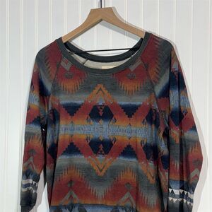 Obsessed with this rare Denim & Supply Ralph Lauren sweater—features a bold sunset-inspired southwestern aztec print and a perfectly relaxed fit.