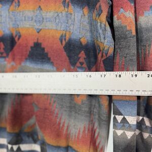 • Pattern: Multicolor geometric/aztec/western design (muted reds, blues, ochre, gray)
