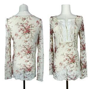 Denim & Supply Ralph Lauren Vintage Sheer Mesh Lace Cottagecore Floral Top. L