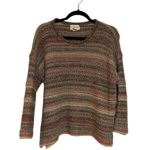 This multicolor knit sweater offers a comfortable, stylish fit for everyday wear. Crafted with a wool-linen blend, its textured design adds visual interest.