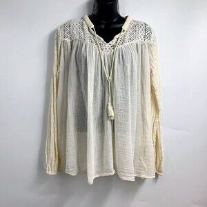 Denim & Supply Ralph Lauren Women' s Boho Ruched Relaxed Chiffon Blouse Size L