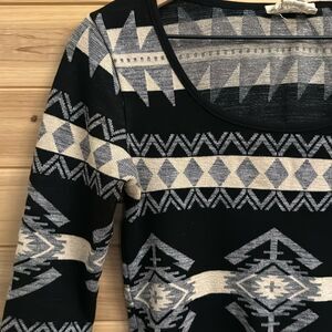 Black Gray & Cream Colored Aztec Western Printed Scoop Neck Elbow Dress