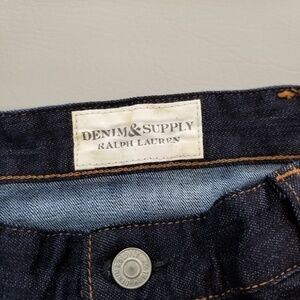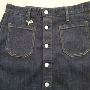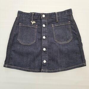 Denim & Supply Ralph Lauren mini skirt in a dark wash. It is new with tags. It is the Tilden Button Front Skirt. It has buttons on the front and two patch pockets.