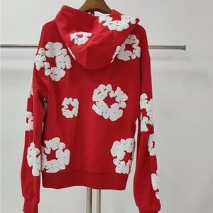 Stay stylish and comfortable with the Denim Tears men's red sweater, featuring a unique white floral design. Perfect for any casual occasion.