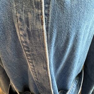 Stylish denim trench coat perfect for any occasion. Features a classic belt for a flattering fit. Ideal for layering in cooler weather.