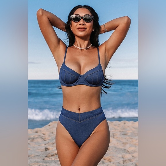 Denim Underwire Bikini Top & Cheeky Bottoms Set NWT