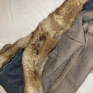 Denim Vest with Genuine Rabbit Fur Trim Beautiful and Soft Women's Size M